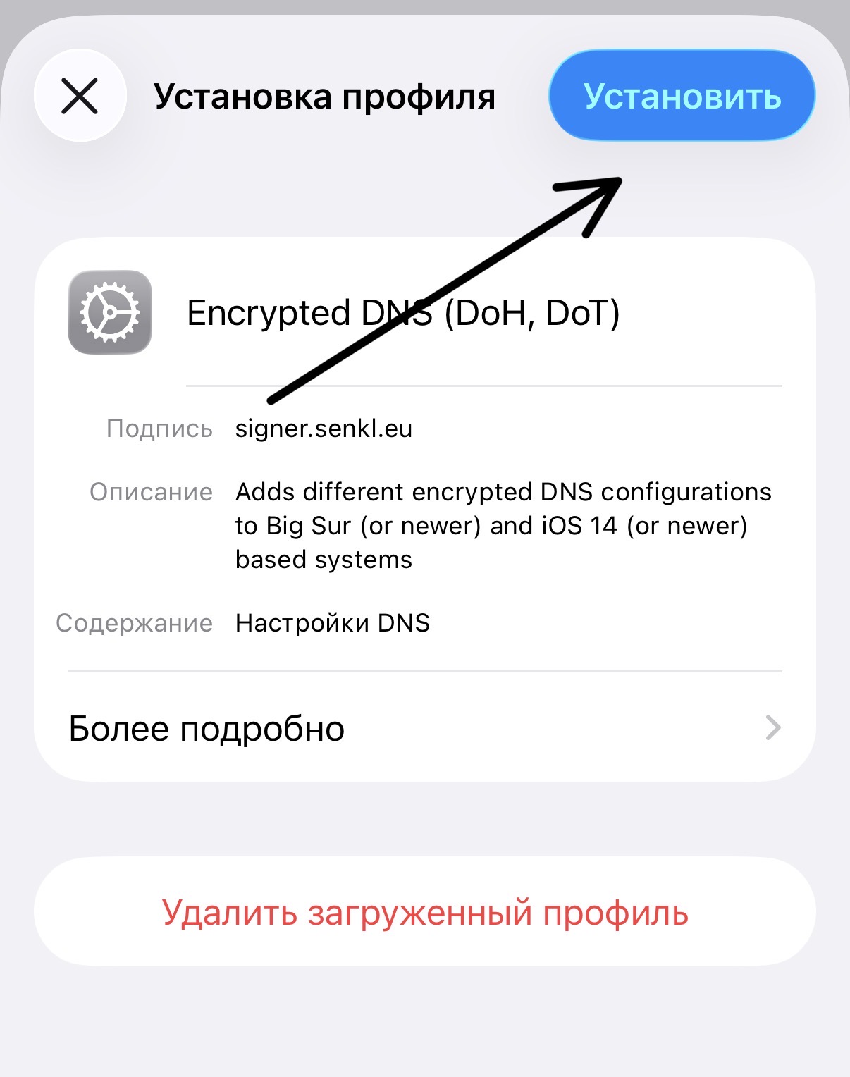 После загрузки, зайдите в настройки самого iPhone, появится уведомление Профиль загружен - нажмите на него.
